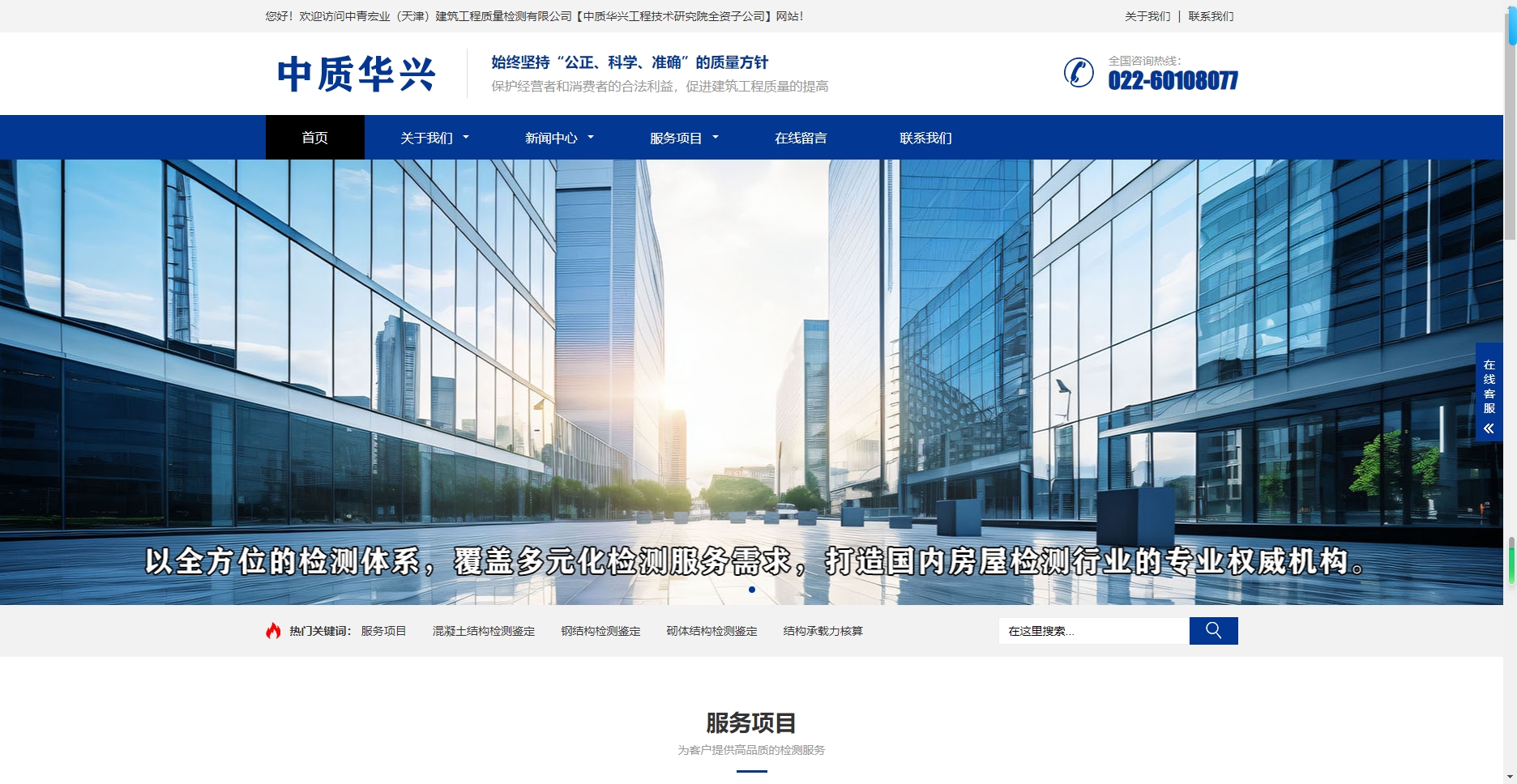 经过近2个月的前端设计、服务器环境测试、工信部备案等准备工作,中质华兴工程技术研究院全资子公司中青宏业(天津)建筑工程质量检测有限公司官网正式上线!